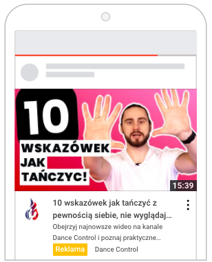 Reklama promująca nowy odcinek opublikowany na YouTubie. Dzięki kampanii promującej kanał Dance Control wspieramy treści contentowe tworzone przez założycieli szkoły tańca.